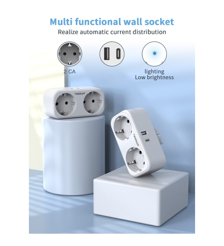 Το <strong>TESSAN Πολύπριζο Τοίχου 4-σε-1</strong> είναι η ιδανική λύση για την ασφαλή και εύκολη επέκταση της ηλεκτρικής σας σύνδεσης. Με <strong>δύο υποδοχές Schuko</strong>, <strong>μία θύρα USB-A</strong> και <strong>μία θύρα USB-C</strong>, αυτό το πολύπριζο είναι ιδανικό για τη ταυτόχρονη φόρτιση πολλαπλών συσκευών χωρίς την ανάγκη για επιπλέον προσαρμογείς. Ο σύγχρονος σχεδιασμός του σε <strong>λευκό και γκρι</strong> χρώμα το καθιστά διακριτικό σε κάθε εσωτερικό χώρο, ενώ η <strong>αυξημένη προστασία αφής</strong> εξασφαλίζει την ασφάλεια των χρηστών.