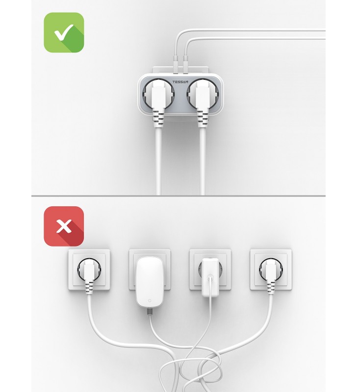 <strong>TESSAN Πολύπριζο Τοίχου 4-σε-1 – Schuko, USB-A & USB-C</strong>