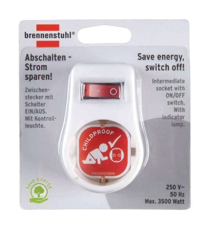 Αντάπτορας Πρίζας Σούκο Brennenstuhl με Διακόπτη On/Off (250V/3500W) IP20 με Παιδική Προστασία