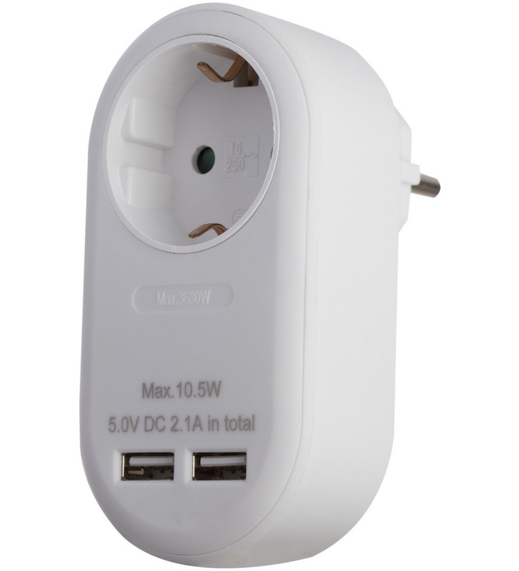 Entac Πρίζα Σούκο με 2 Θύρες USB (total 2.1A) Άσπρο - Entac (EPAG-1EE-2USB-W)