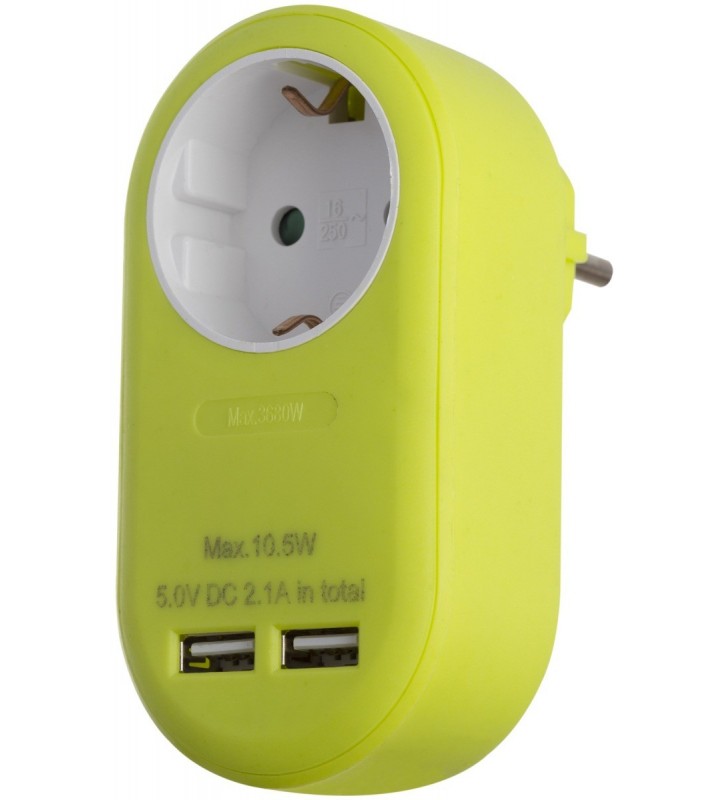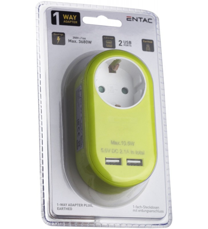 Entac Πρίζα Σούκο με 2 Θύρες USB (total 2.1A) Λάιμ - Entac (EPAG-1EE-2USB-L)