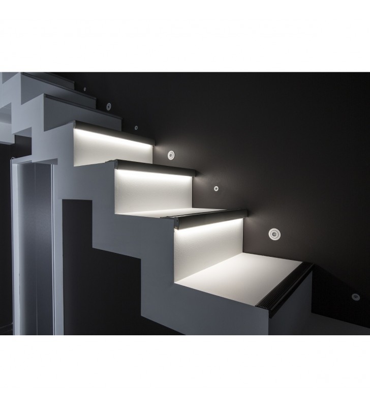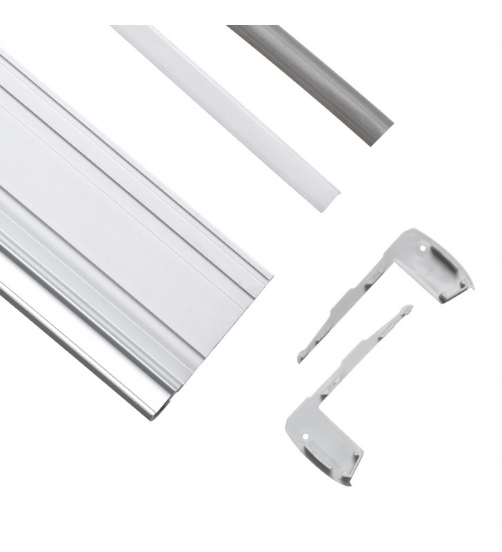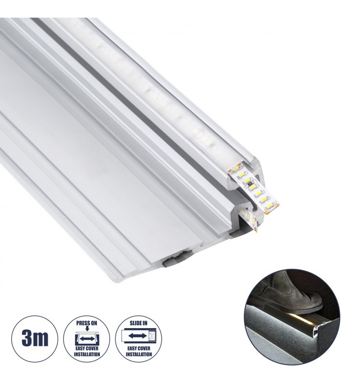 GloboStar 70842-3M Προφίλ Αλουμ. για Σκαλοπάτια Ανοδ/νο Λευκό Κάλυμμα για 2 Ταινίες LED 3 Μέτρα