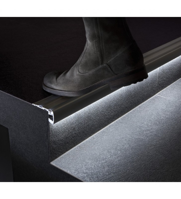 GloboStar® 70842-3M Προφίλ Αλουμινίου για Σκαλοπάτια Ανοδιωμένο με Λευκό Οπάλ Κάλυμμα Up / Down για 2 Σειρές Ταινίας LED Πατητό - Press On με Αντιολισθητικό Ελαστικό Σιλικόνης 3 Μέτρα