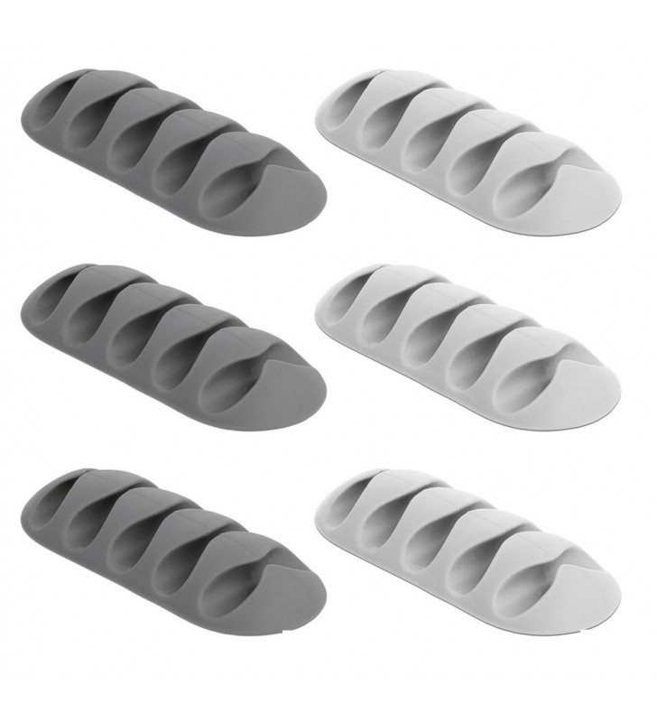 Κατασκευασμένο απο ελαστική σιλικόνη για την εύκολη τακτοποίηση καλωδιών όπως USB ή τροφοδοσίας, διαμέτρου έως 5mm.  Σετ 6 τεμαχίων σε λευκό και γκρι.