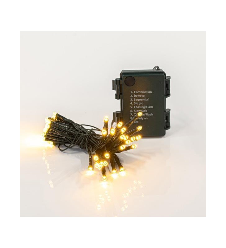 ΣΕΙΡΑ ΜΠΑΤΑΡΙΑΣ, 48 LED 3mm, ΜΕ ΠΡΟΓΡΑΜΜΑ, ΜΝΗΜΗ ΚΑΙ TIMER, ΠΡΟΕΚΤΑΣΗ ΠΑΡΟΧΗΣ 50cm, ΠΡΑΣΙΝΟ ΚΑΛΩΔΙΟ, ΘΕΡΜΟ ΛΕΥΚΟ LED, ΑΝΑ 7,5cm, IP44