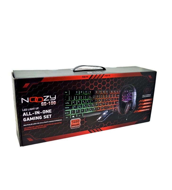 Gaming Set Noozy GS-100 που αποτελείται από Gaming Ακουστικά με Μικρόφωνο, 4D Ποντίκι, LED Πληκτρολόγιο και Mousepad