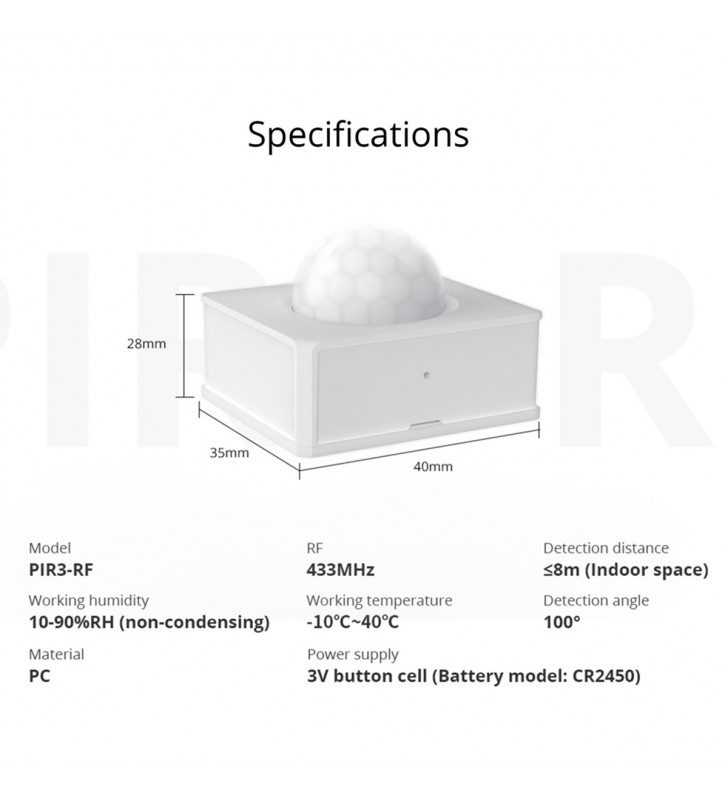 SONOFF PIR3-RF – Smart 433MHZ RF PIR Motion Sensor 6m/110° Detection
