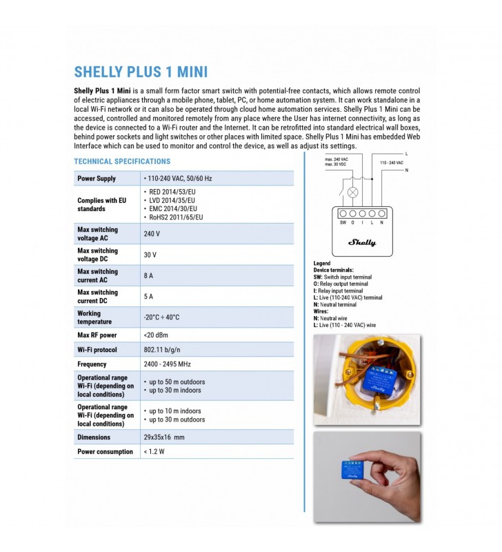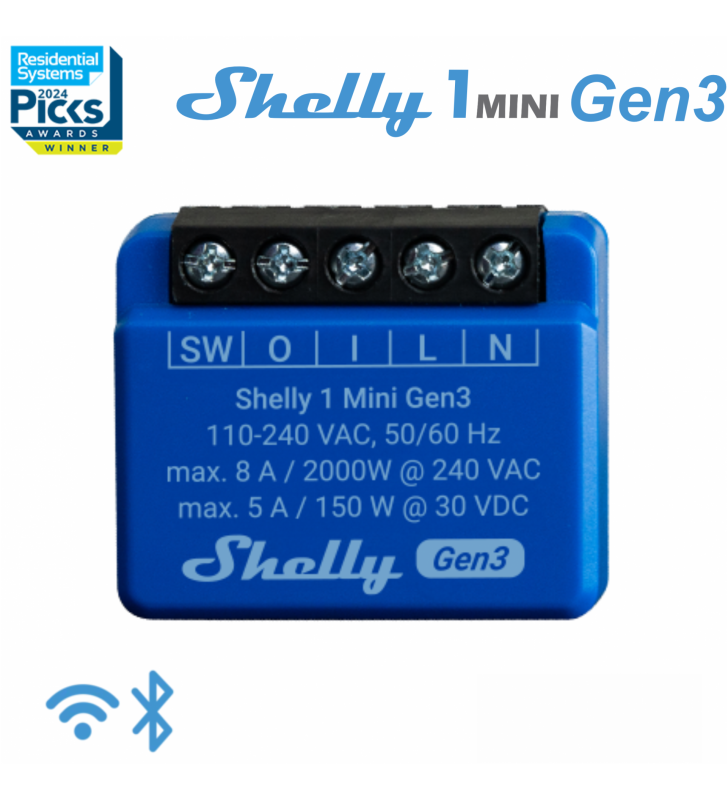 Shelly 1 Mini Gen 3 - Έξυπνος διακόπτης Wi-Fi, 1 κανάλι 8 A