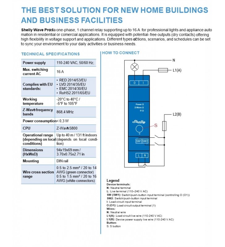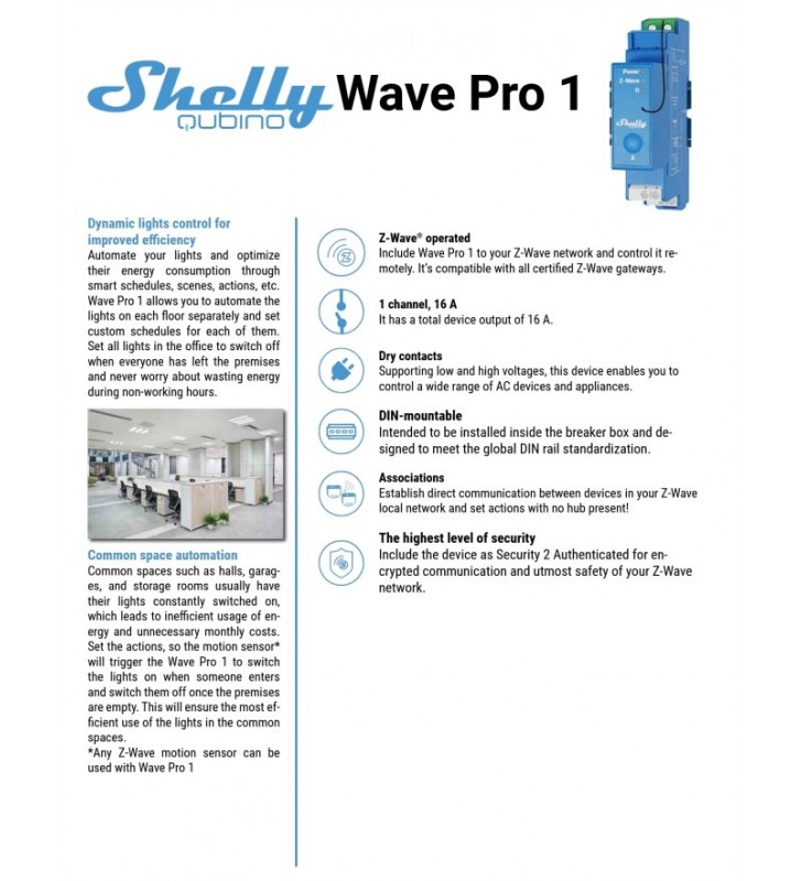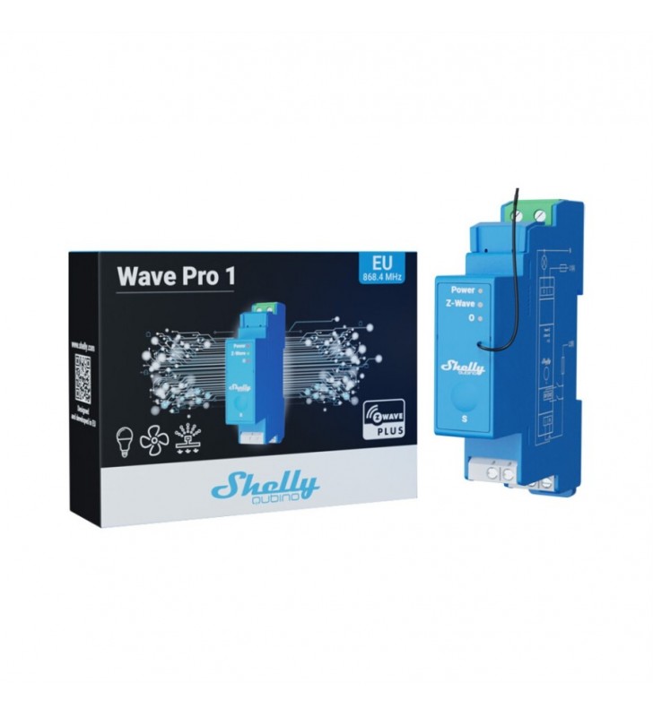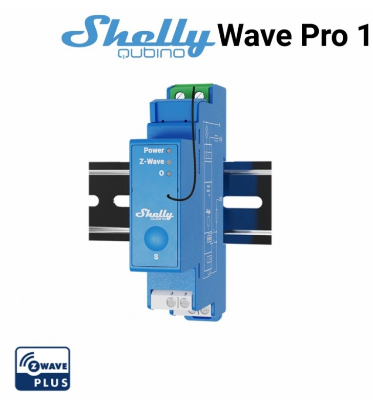 Shelly Qubino Wave Pro 1 - Επαγγ. έξυπνος διακόπτης Z-Wave 1 καναλιού για ράγα με ξηρές επαφές