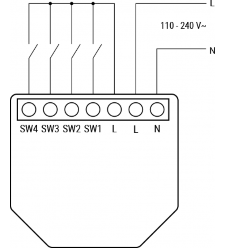 Έξυπνος ελεγκτής εισόδων 4 καναλιών, με τροφοδοσία εναλλασσόμενου ρεύματος, που σας επιτρέπει να ενεργοποιείτε ή να απενεργοποιείτε οποιεσδήποτε σκηνές που έχετε δημιουργήσει, να εκτελείτε συγχρονισμένες ενέργειες ή να εκτελείτε σύνθετα σενάρια ενεργοποίησης.