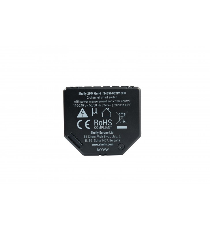 Ένας έξυπνος διακόπτης 2 καναλιών για τον έλεγχο κουρτινών, περσίδων και παραθυρόφυλλων. Διαθέτει μέτρηση ισχύος και υποστήριξη πολλαπλών πρωτοκόλλων (Wi-Fi, Zigbee, Matter, Bluetooth).