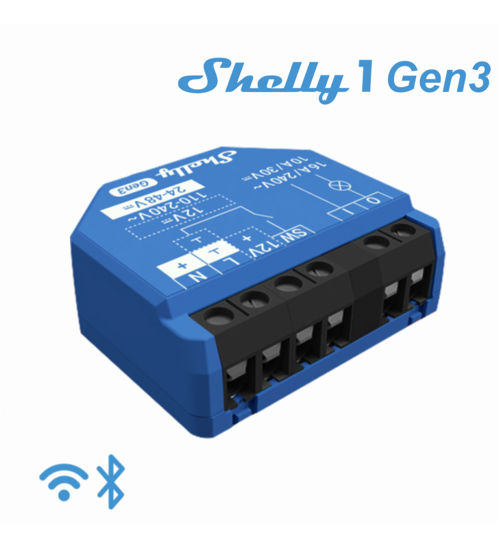 Shelly 1 Gen3 - Έξυπνος διακόπτης Wi-Fi, 1 κανάλι 16 A με ξηρές επαφές