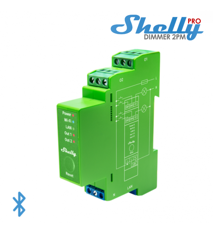 Shelly Pro Dimmer 2PM - Επαγγ. έξυπνο dimmer ράγας 2 καναλιών με παρακολούθηση ισχύος