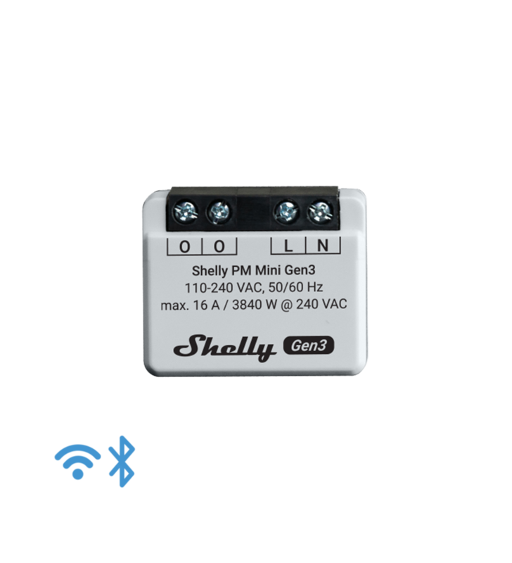 Shelly PM Mini Gen3 - Έξυπνος μετρητής ισχύος που λειτουργεί με Wi-Fi, 1 κανάλι 8 A