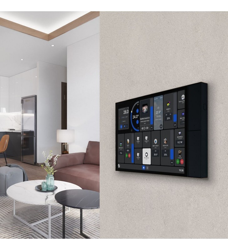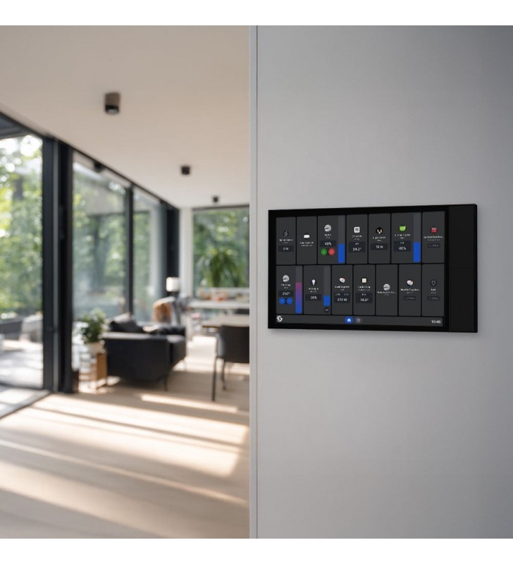 Έξυπνος πίνακας ελέγχου σπιτιού με οθόνη αφής 10,1 ιντσών, ενσωματωμένη εναλλαγή ρελέ και τέσσερα προσαρμόσιμα κουμπιά. Εγκαθίσταται σε ένα τυπικό ηλεκτρικό κουτί τοίχου και σας παρέχει πλήρη και εύκολο έλεγχο των συσκευών Shelly σας - ιδανικό για σπίτια, διαμερίσματα, ξενοδοχεία και εμπορικούς χώρους.