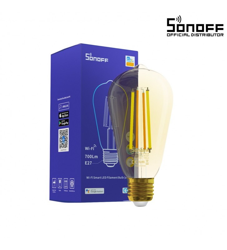 SONOFF B02-F-ST64-R2 - Wi-Fi Smart LED Filament Bulb E27 ST64 7W 700lm 1800K to 5000K Dimmable