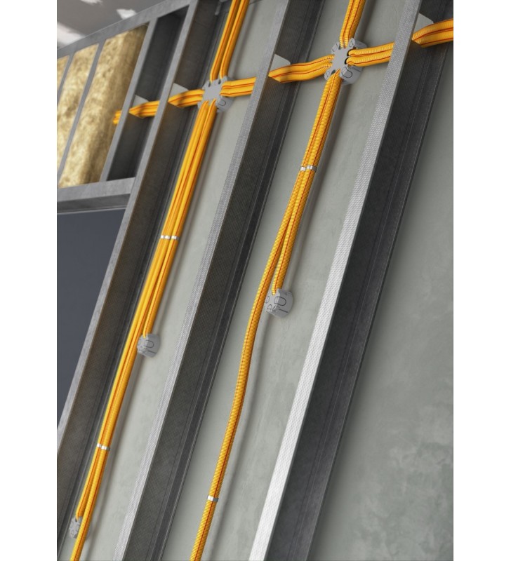Μαζί με τον ευθύγραμμο 3στρωματικό σωλήνα SUPERSOL PLUS, τα εξαρτήματα (στήριγμα και μούφα) σε κίτρινο χρώμα RAL 1023 και τα μεταλλικά στηρίγματα KOUVIDIS, συνθέτουν το απόλυτο σύστημα για χωνευτές ηλεκτρικές εγκαταστάσεις ελαφρού τύπου.
