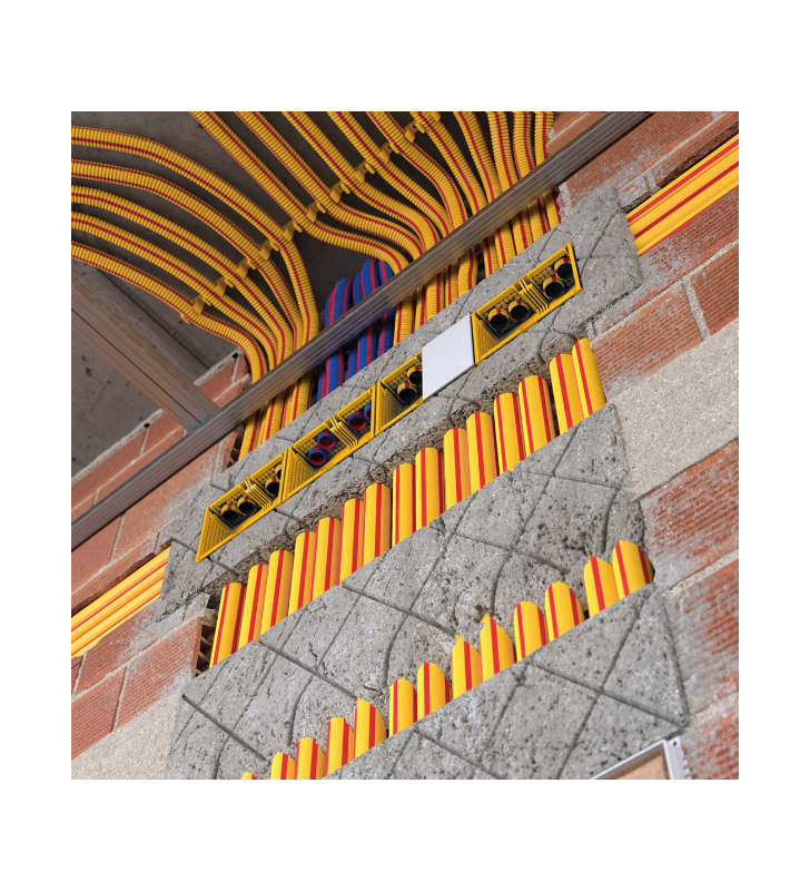 Μαζί με τον διαμορφώσιμο 3στρωματικό σωλήνα SUPERFLEX PLUS, τα εξαρτήματα (στήριγμα και μούφα) σε κίτρινο χρώμα RAL 1023 και τα μεταλλικά στηρίγματα KOUVIDIS, συνθέτουν το απόλυτο σύστημα για χωνευτές ηλεκτρικές εγκαταστάσεις ελαφρού τύπου.