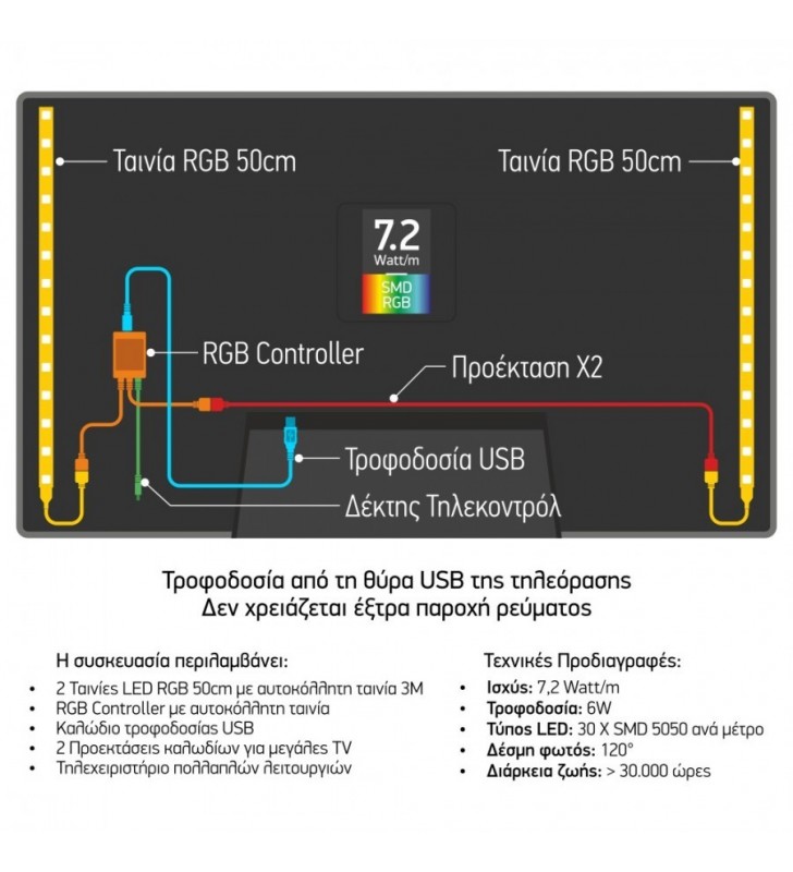 GloboStar 70418 Σετ Ταινία LED RGB 10m (2x5M) 7.2W/m 12V με Τροφοδοτικό & Τηλεχειριστήριο IP65