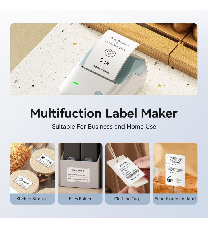 <li><strong>Πολυδιάστατη Χρήση:</strong> Ιδανικός για χρήση σε αρτοποιεία, χειροτεχνίες, λιανική, ρούχα, κοσμήματα, μικρές επιχειρήσεις, σχολεία, γραφεία και οργάνωση σπιτιού. Κατάλληλος για ετικέτες διευθύνσεων, γραμμωτούς κωδικούς, τιμές, ημερομηνίες, συστατικά προϊόντων και ετικέτες προϊόντων. Επίσης, εξαιρετική επιλογή για δώρα για γενέθλια, επετείους, μετακομίσεις, γάμους, Χριστούγεννα, Halloween, Ευχαριστίες και Ημέρα της Μητέρας.</li>
