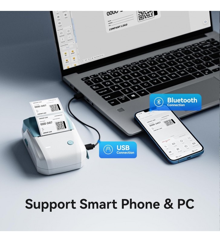 <li><strong>Εύρος Μεγέθους Ετικετών:</strong> Υποστηρίζει ετικέτες με πλάτος 20mm-50mm (1-2 ίντσες), με ενεργό πλάτος εκτύπωσης 48mm. Συμπεριλαμβάνεται ρολό ετικετών (2x1,18 ίντσες, 50x30 mm) με 230 ετικέτες ανά ρολό.</li>