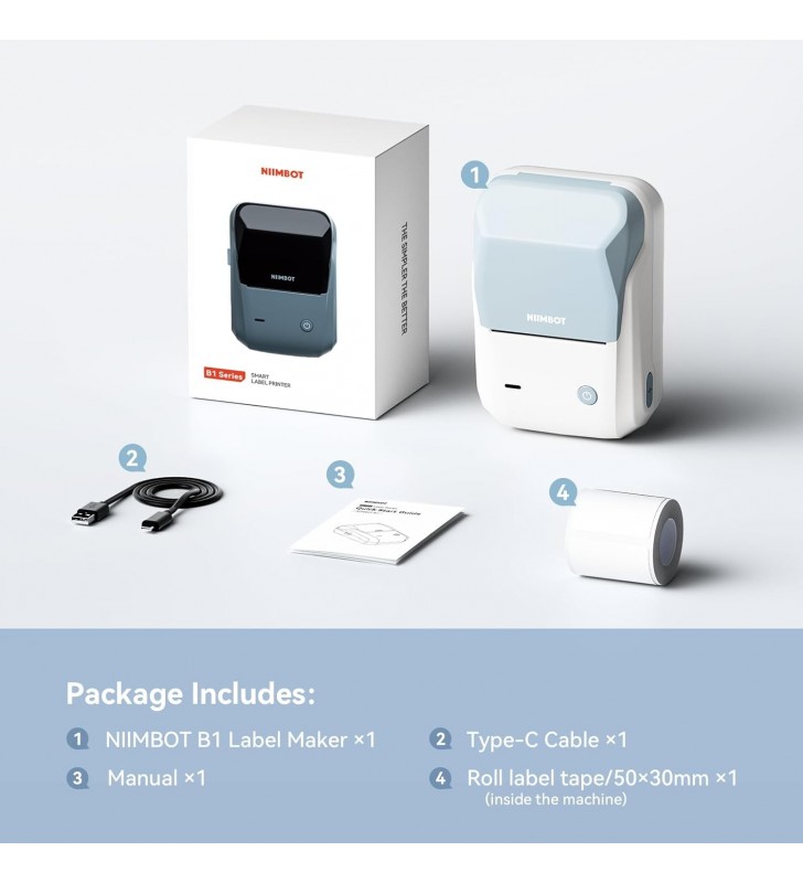 NIIMBOT THERMAL LABEL PRINTER B1 2-INCH WHITE BLUE - NIIMBOT (B1-WB)