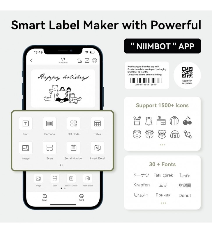 <li><strong>Εύκολη Χρήση:</strong> Ο εκτυπωτής ετικετών B1 Bluetooth είναι συμβατός με iOS, Android και PC. Σημείωση: Δεν είναι συμβατός με iPad. Η δωρεάν εφαρμογή προσφέρει περισσότερες από 30 γραμματοσειρές/γλώσσες, 100+ περιθώρια και 1500+ σύμβολα. Απλά κατεβάστε την εφαρμογή, επιλέξτε και συνδέστε το μοντέλο B1, και ξεκινήστε την εκτύπωση.</li>