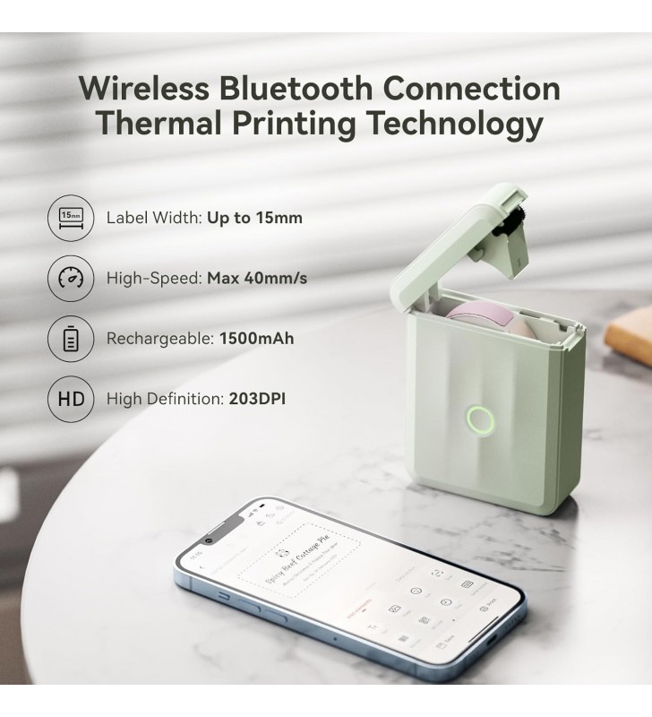 <li><strong>Υψηλή Ποιότητα Εκτύπωσης:</strong> Χρησιμοποιεί τεχνολογία άμεσης θερμικής εκτύπωσης με ανάλυση 203 DPI, προσφέροντας αποτελέσματα υψηλής ευκρίνειας χωρίς την ανάγκη μελανιών ή τόνερ. Εξοπλισμένος με επαναφορτιζόμενη μπαταρία 1500mAh για παρατεταμένη χρήση. Σημείωση: Αποφύγετε την αποκόλληση ή την καταστροφή του αισθητήρα εκτύπωσης στο ρολό για να διατηρήσετε την ποιότητα εκτύπωσης.</li>