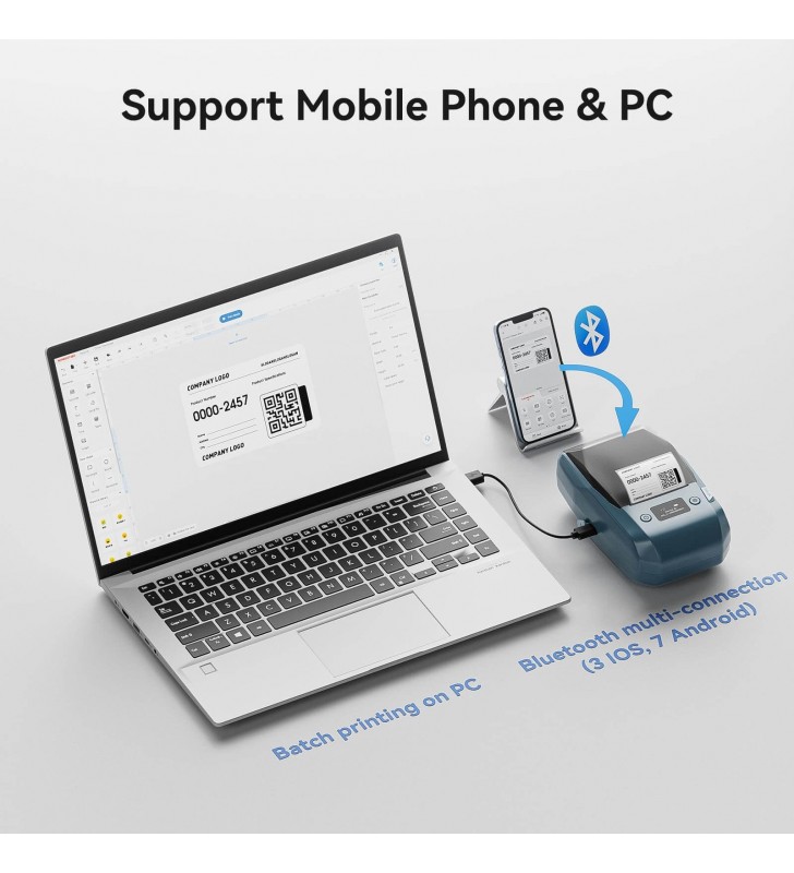 <li><strong>Υποστήριξη Επεξεργασίας μέσω Κινητού και Υπολογιστή:</strong> Ασύρματη σύνδεση Bluetooth με την εφαρμογή ''NIIMBOT APP'' για δημιουργία εξατομικευμένων ετικετών, υποστηρίζει έως 10 κινητά τηλέφωνα ταυτόχρονα (3 iOS, 7 Android). Επίσης, μπορεί να συνδεθεί με υπολογιστή μέσω καλωδίου δεδομένων (απαιτείται εγκατάσταση οδηγών) για πιο ποικιλόμορφη επεξεργασία περιεχομένου.</li>
