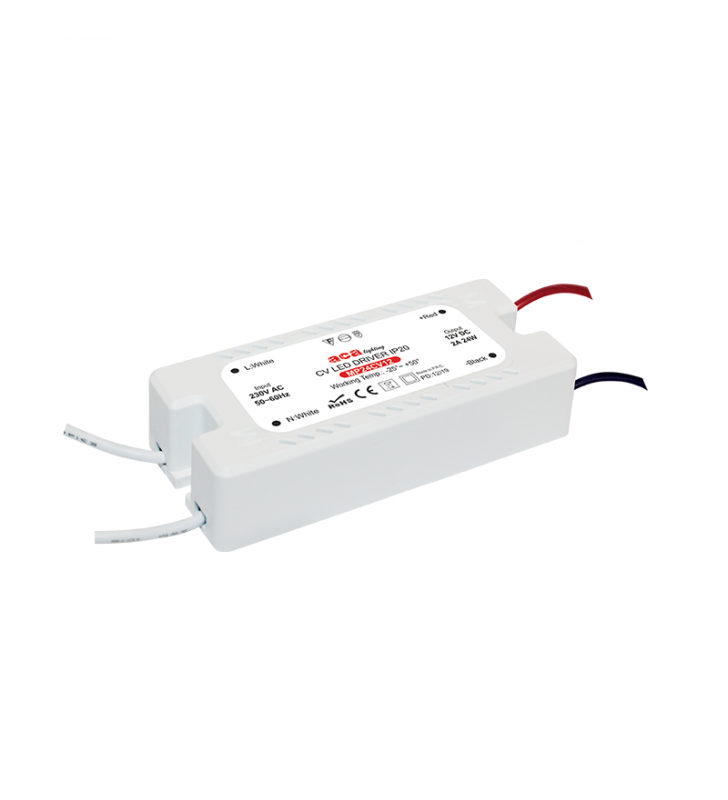 MINI PLASTIC CV LED DRIVER 36W 230V AC-24V DC 1.5A IP20 WITH CABLES - ACA (MP36CV24)