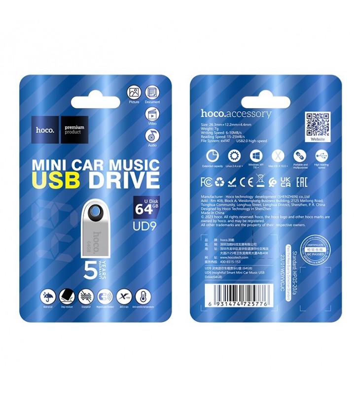Flash Drive Hoco UD10 2 in 1 64GB USB-A 3.0 και USB-C Συμβατό με Windows Mac Linux και Android Ασημί