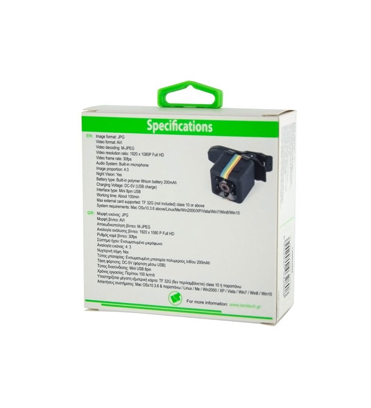 Υποστηρίζεται μέγιστη εξωτερική κάρτα: TF 32G (δεν περιλαμβάνεται) τάξης 10 ή παραπάνω